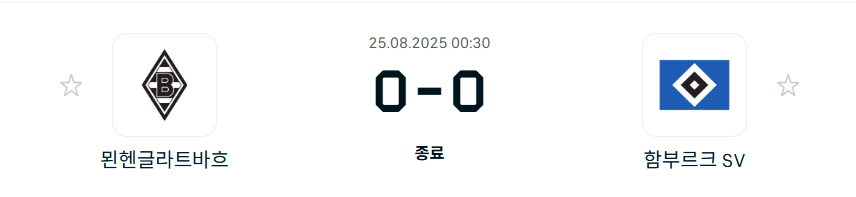25-26시즌 08월25일 분데스리가 1라운드 - 함부르크 vs 글라트바흐 결과.팀전적.순위